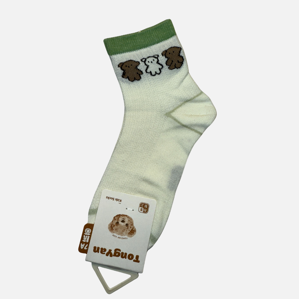 These adorable kids ankle socks come with cute bear-themed designs exactly as shown in the product image. Soft, stretchy, and comfortable, these socks include different shades of cream, light green, and pastel tones with fun bear characters and simple stripe patterns.